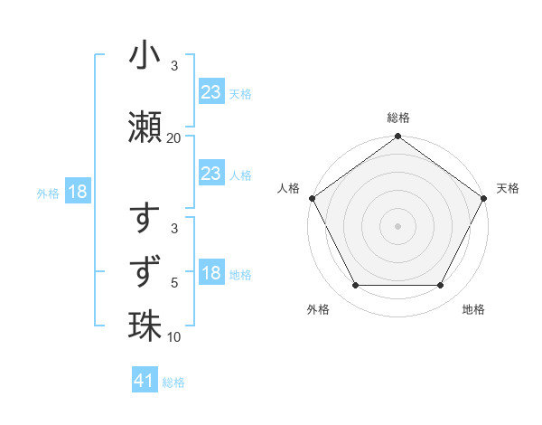 小瀬 すず珠さんの天格は23画の5点!