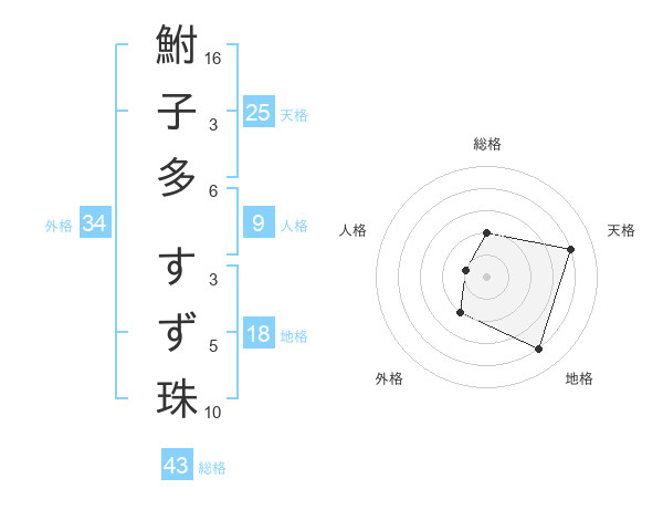 鮒子多 すず珠さんを姓名の画数から五運を鑑定