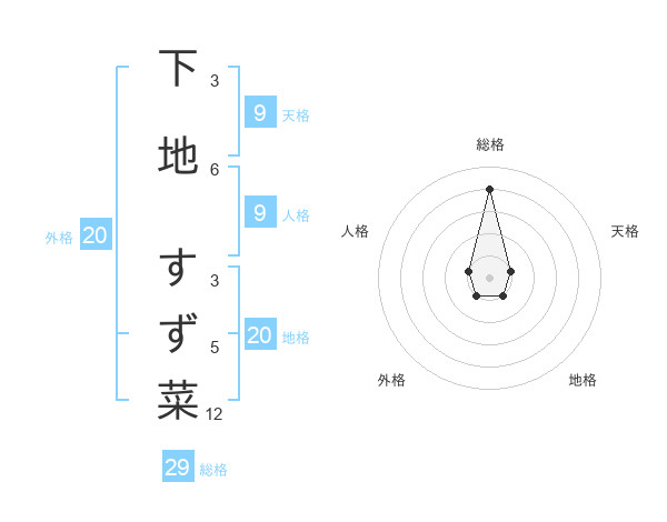 下地 すず菜さんの総格は29画の4点!