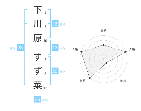 下川原 すず菜さんを姓名の画数から五運を鑑定