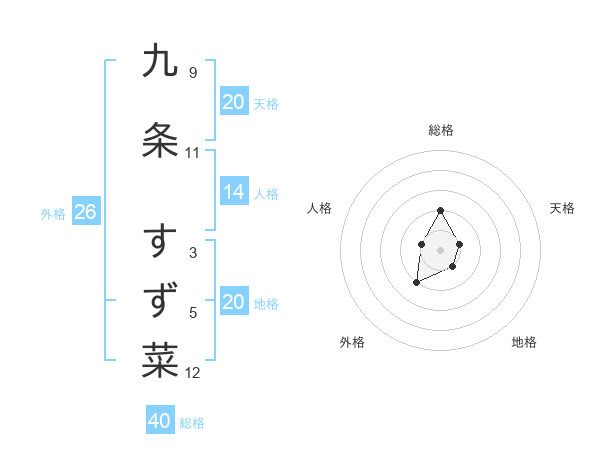 九条 すず菜さんを姓名の画数から五運を鑑定