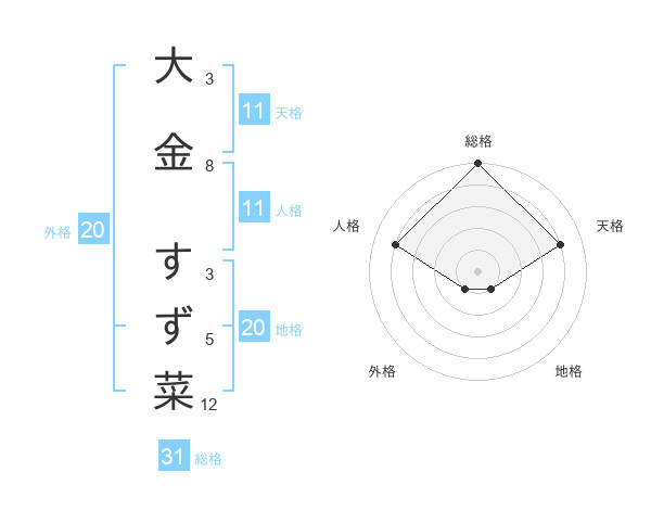 大金 すず菜さんを姓名の画数から五運を鑑定
