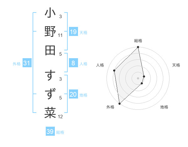 小野田 すず菜さんを姓名の画数から五運を鑑定