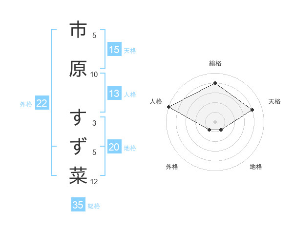 市原 すず菜さんの総格は35画の4点!