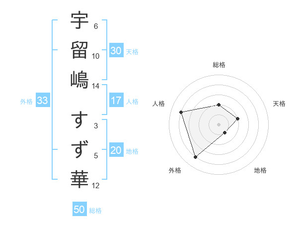 宇留嶋 すず華さんを姓名の画数から五運を鑑定