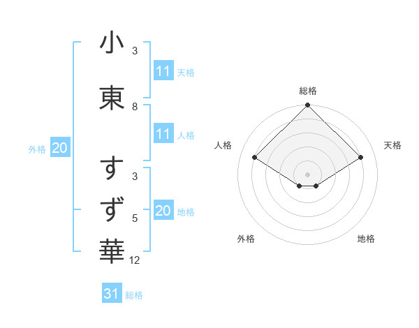 小東 すず華さんの総格は31画の5点!