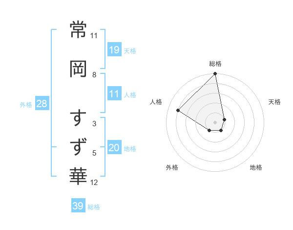 常岡 すず華さんを姓名の画数から五運を鑑定