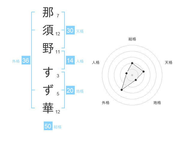 那須野 すず華さんの総格は50画の2点!