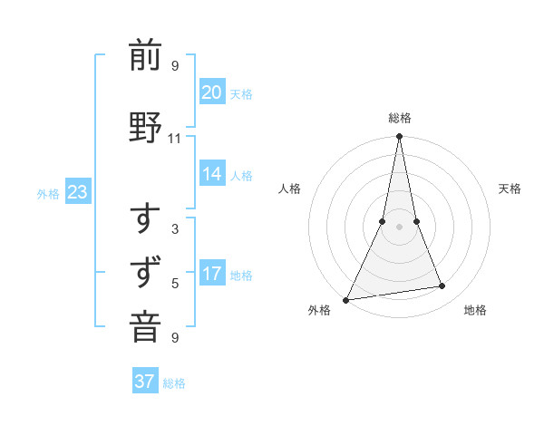 前野 すず音さんの総格は37画の5点!