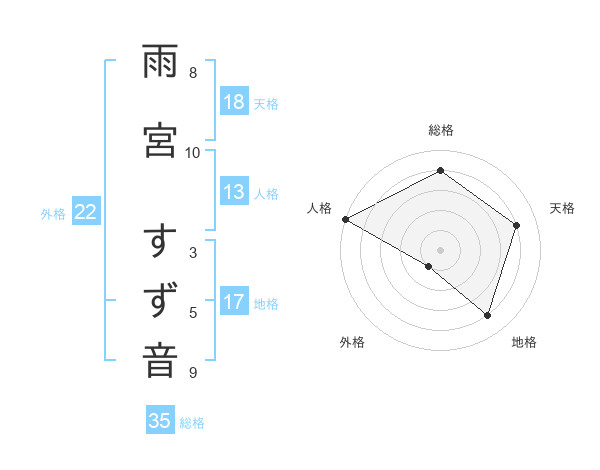 雨宮 すず音さんを姓名の画数から五運を鑑定
