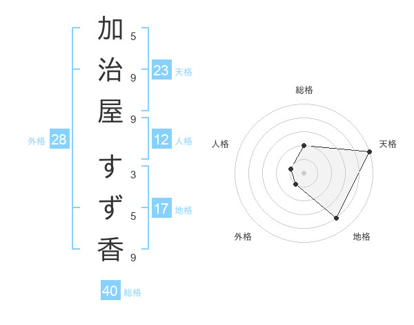 加治屋 すず香さんの天格は23画の5点!