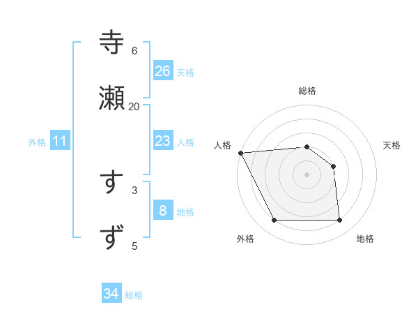 寺瀬 すずさんを姓名の画数から五運を鑑定