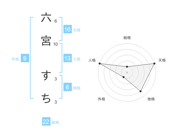 六宮 すちさんの総格は22画の1点!