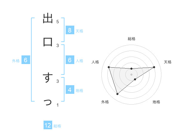 出口 すっさんの総格は12画の1点!