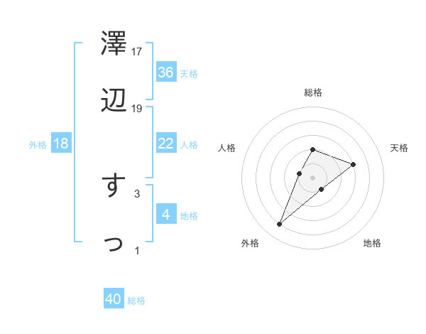 澤辺 すっさんを姓名の画数から五運を鑑定