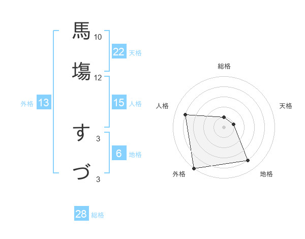 馬塲 すづさんを姓名の画数から五運を鑑定