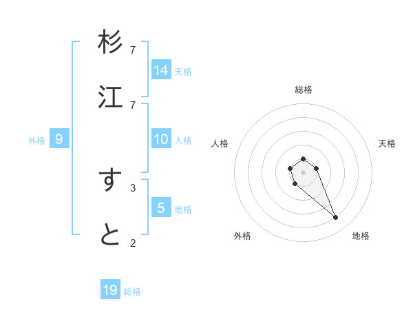 杉江 すとさんの総格は19画の1点!