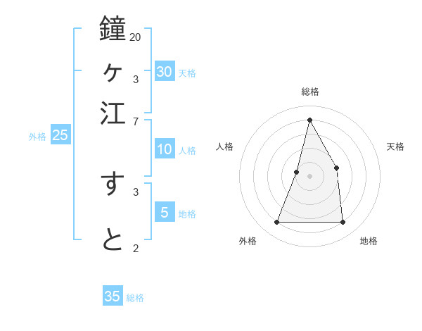 鐘ヶ江 すとさんを姓名の画数から五運を鑑定
