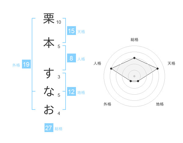栗本 すなおさんを姓名の画数から五運を鑑定