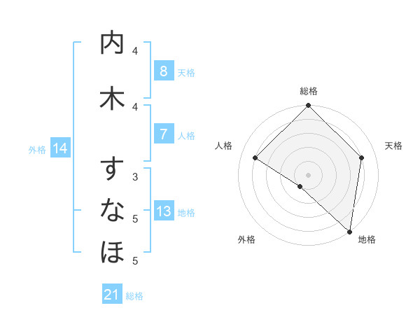 内木 すなほさんの総格は21画の5点!