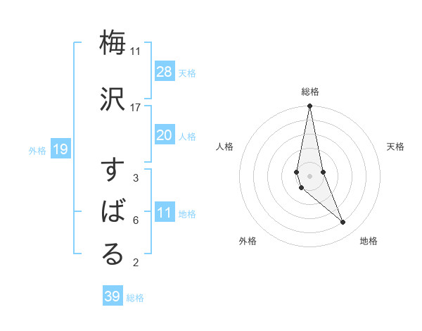 梅沢 すばるさんの総格は39画の5点!