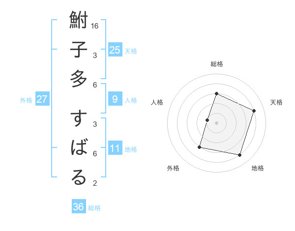 鮒子多 すばるさんを姓名の画数から五運を鑑定