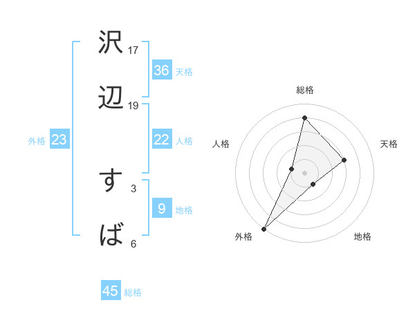 沢辺 すばさんの総格は45画の4点!