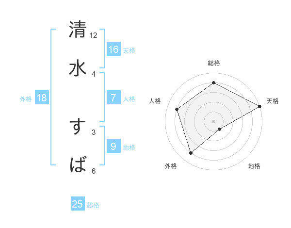 清水 すばさんの天格は16画の5点!
