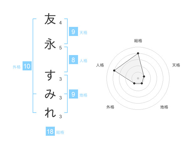 友永 すみれさんの天格は9画の1点!