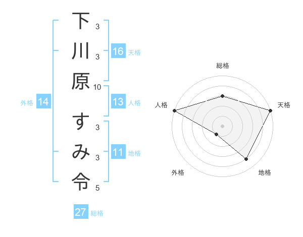 下川原 すみ令さんの天格は16画の5点!