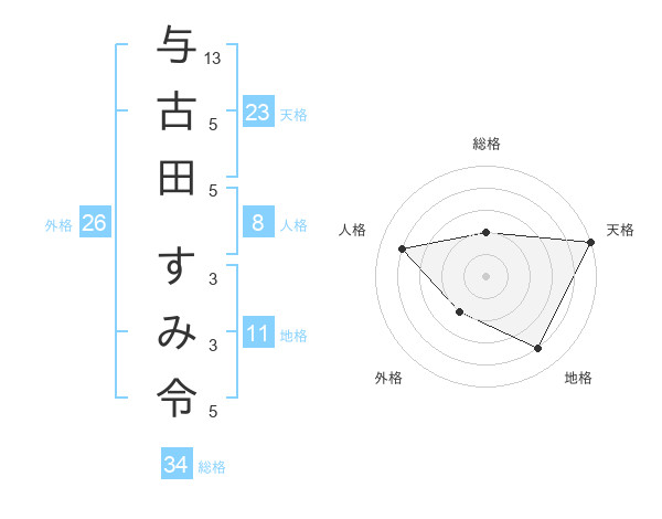 与古田 すみ令さんを姓名の画数から五運を鑑定