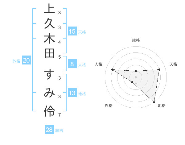 上久木田 すみ伶さんを姓名の画数から五運を鑑定