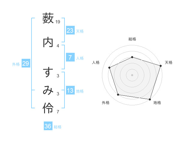 薮内 すみ伶さんの地格は13画の5点!