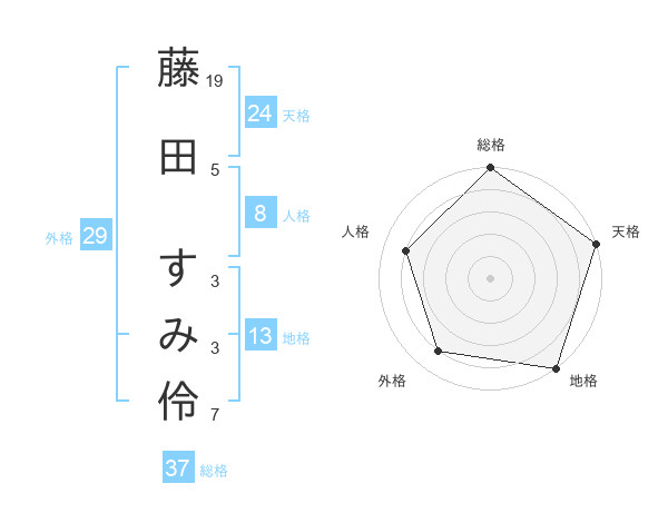 藤田 すみ伶さんを姓名の画数から五運を鑑定