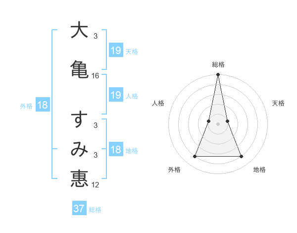 大亀 すみ惠さんを姓名の画数から五運を鑑定