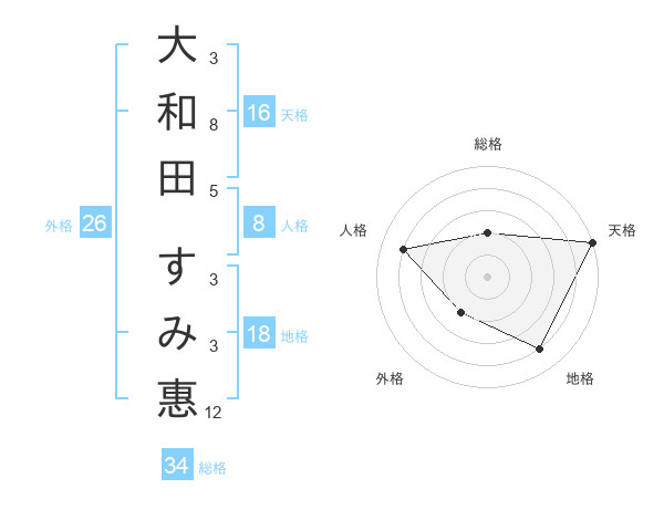 大和田 すみ惠さんを姓名の画数から五運を鑑定
