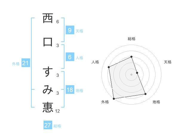 西口 すみ惠さんの総格は27画の3点!