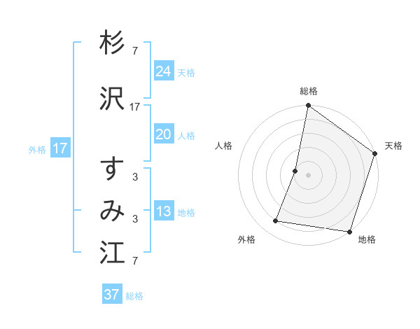 杉沢 すみ江さんを姓名の画数から五運を鑑定