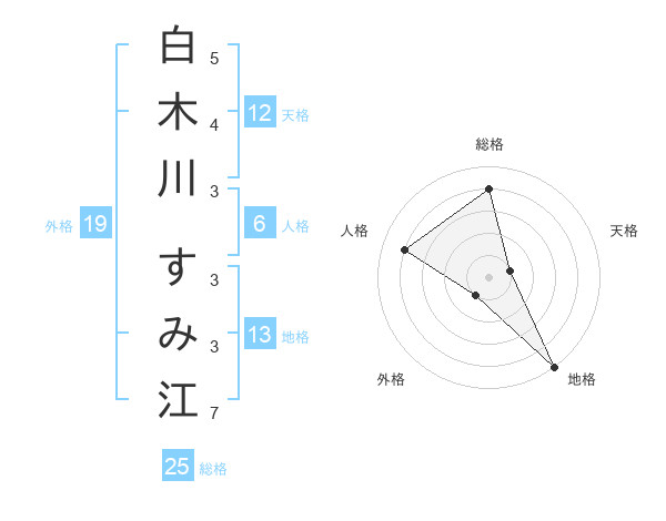 白木川 すみ江さんの総格は25画の4点!