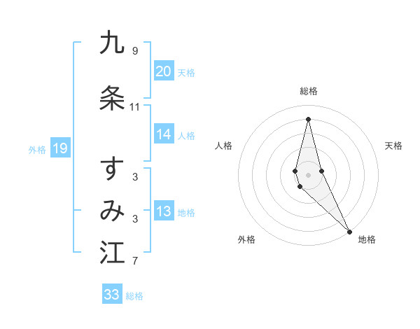 九条 すみ江さんの総格は33画の4点!