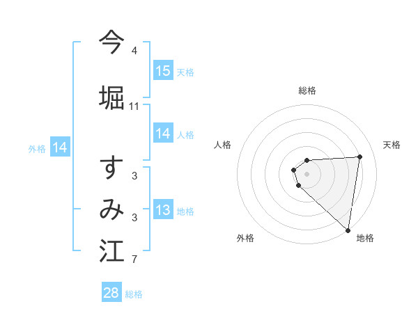 今堀 すみ江さんを姓名の画数から五運を鑑定