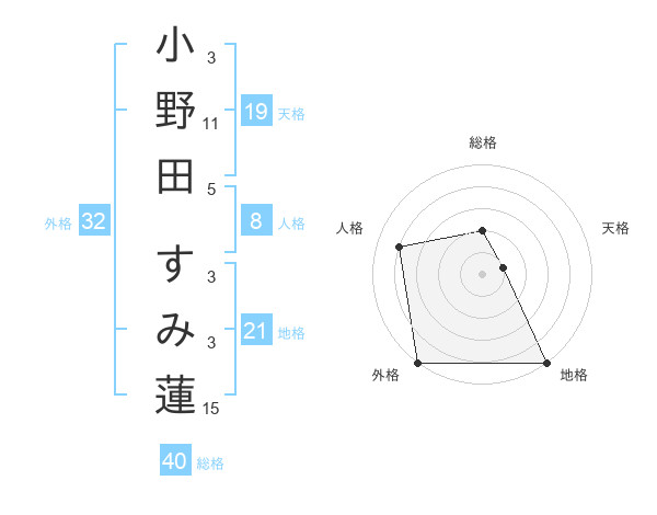 小野田 すみ蓮さんを姓名の画数から五運を鑑定