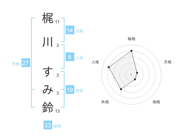 梶川 すみ鈴さんの総格は33画の4点!