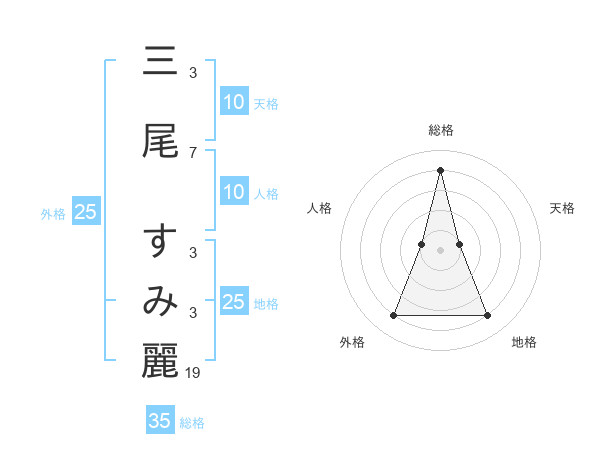 三尾 すみ麗さんの総格は35画の4点!