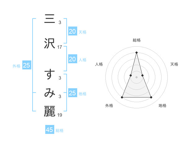 三沢 すみ麗さんを姓名の画数から五運を鑑定