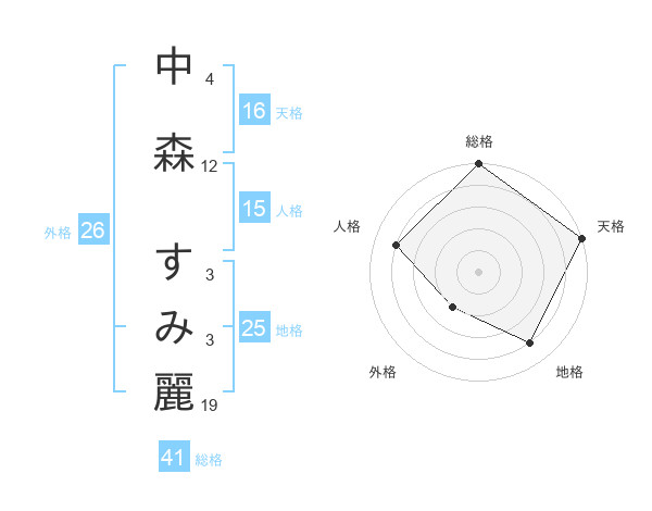 中森 すみ麗さんを姓名の画数から五運を鑑定
