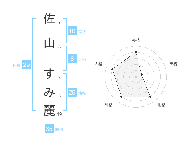 佐山 すみ麗さんを姓名の画数から五運を鑑定