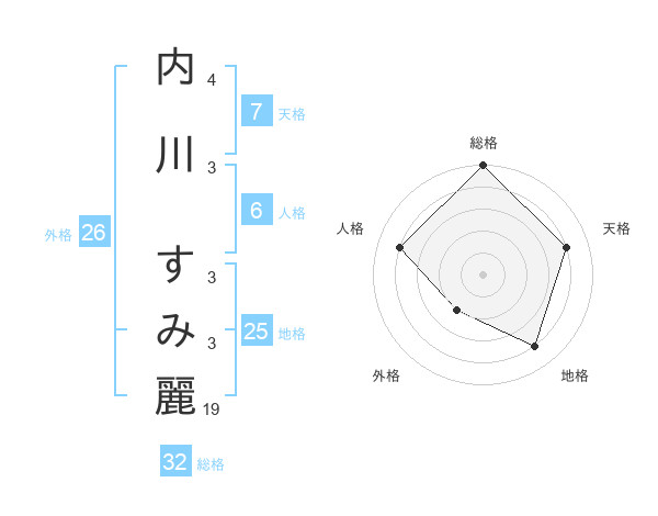 内川 すみ麗さんの総格は32画の5点!