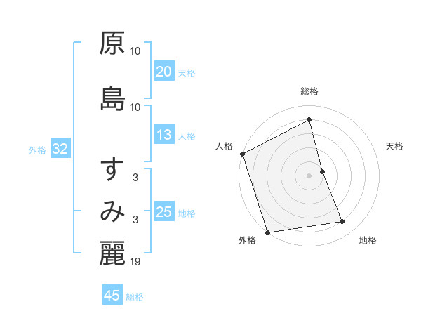 原島 すみ麗さんの外格は32画の5点!