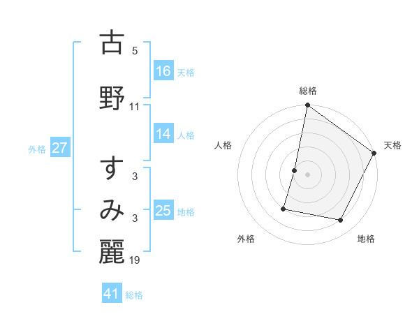 古野 すみ麗さんを姓名の画数から五運を鑑定
